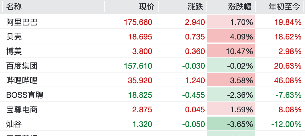热门中概股涨跌不一,纳斯达克中国金龙指数收涨0.32%,新东方涨超5%,哔哩哔哩涨超3%,理想汽车涨超2%,阿里巴巴涨超1%,霸王茶姬、蔚来跌超1%。